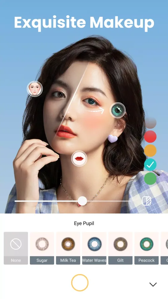 Makeup enthusiasts will adore the vast array of virtual makeup tools available within the app. From lipstick shades to blush colors, contact lenses, mascaras, eyeliners, eyeshadows, and foundations, "Beauty Camera" lets you try on countless combinations without ever leaving your home. These realistic effects ensure that you'll always look picture-perfect, whether you're going for a natural look or something bolder and more dramatic.