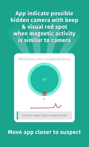 App analyses magnetic activity and warn you if it find magnetic activity similar to camera.
