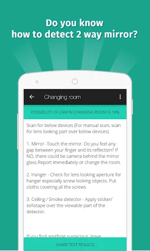 This app analyse the magnetic activity around the device. If magnetic activity seems similar to that of camera, this app will beep and raise alarm for you so that you can further investigate.