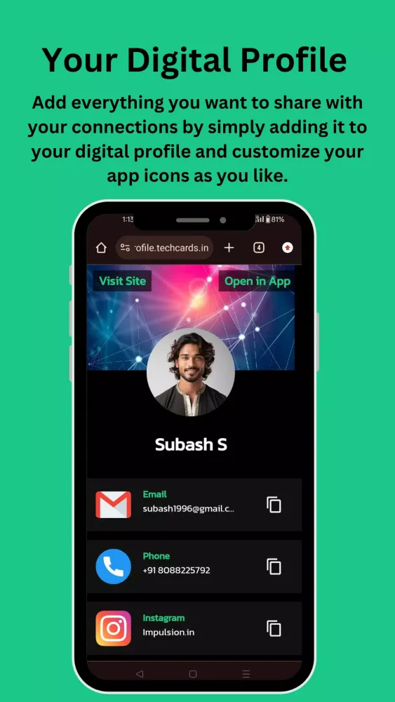 Techcards eliminates the hassle of carrying physical cards. Simply tap your NFC-enabled smartphone against another NFC device, and your contact information is transferred instantly. For those without NFC, scanning a QR code does the trick. This feature ensures that no matter where you are, you’re always prepared to connect.
