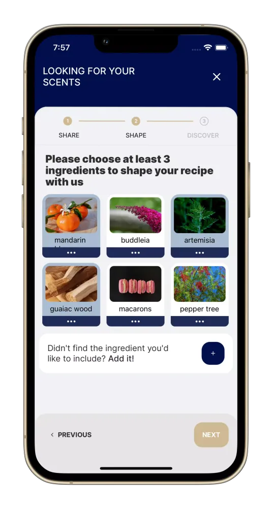 I don't require any personal details like your age or gender. Instead, I focus on understanding the essence of who you are as a person. By doing so, I can analyze your emotions and preferences to identify the scents that resonate most with you. With a database of over 580 unique scents, I can predict which fragrances align with your personality and desired mood. And among these, I can recommend the perfect perfume from a vast collection of 50,000 different fragrances!