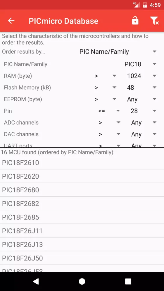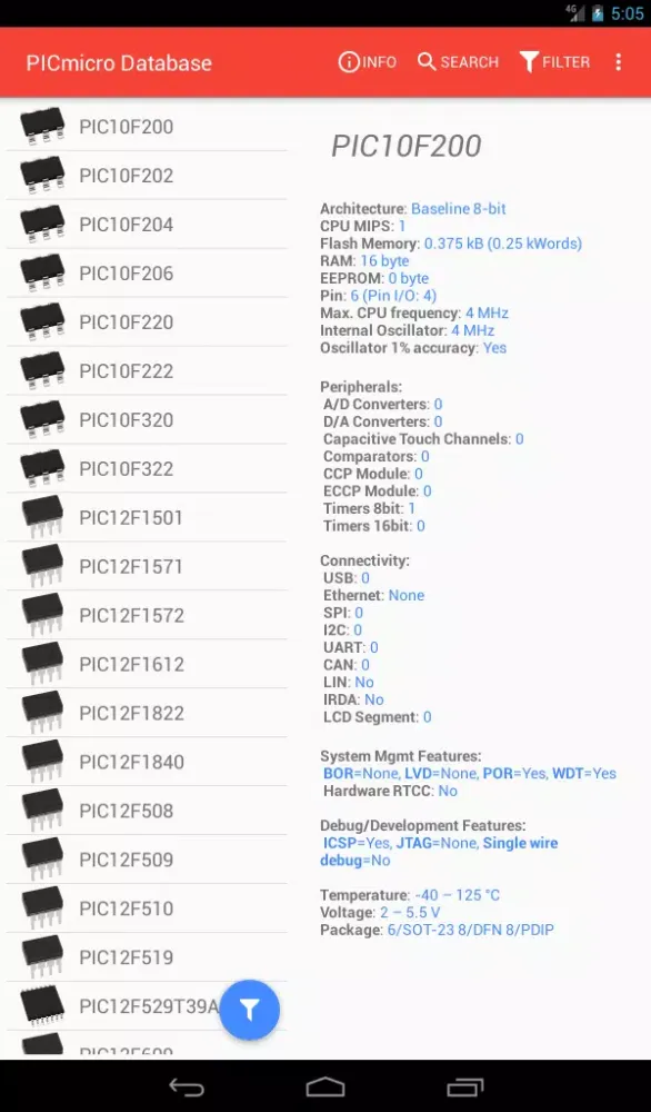 The PICmicro Database is an essential tool designed to help users explore and understand the vast array of PIC and dsPIC microcontrollers developed by Microchip Technology. Whether you're a hobbyist, student, or professional engineer, this application provides a comprehensive platform to search for your preferred microcontroller, review its features, and apply relevant filters to narrow down your options. With every update, the developers are committed to introducing exciting new features that will enhance the user experience further.