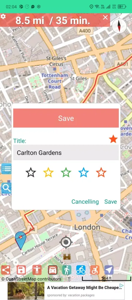 At the heart of "My Maps - Navigation" lies its robust GPS functionality. This app offers instant access to full street addresses across the globe, ensuring that you never have to guess or rely on vague directions again. The integration of device GPS allows for real-time location tracking, making it easier than ever to pinpoint your exact position and plan your route accordingly. Whether you're walking, cycling, driving, or using a wheelchair, the app supports multiple modes of transportation, catering to diverse needs and preferences.