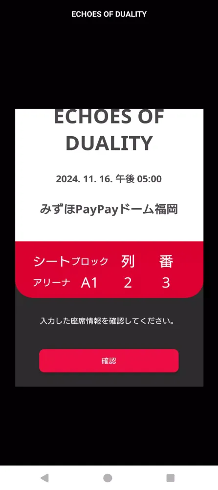 - It is important to ensure the battery is sufficiently charged before attending the concert. Depending on the battery performance and smartphone model, the displayed remaining amount may differ from the actual remaining amount.
