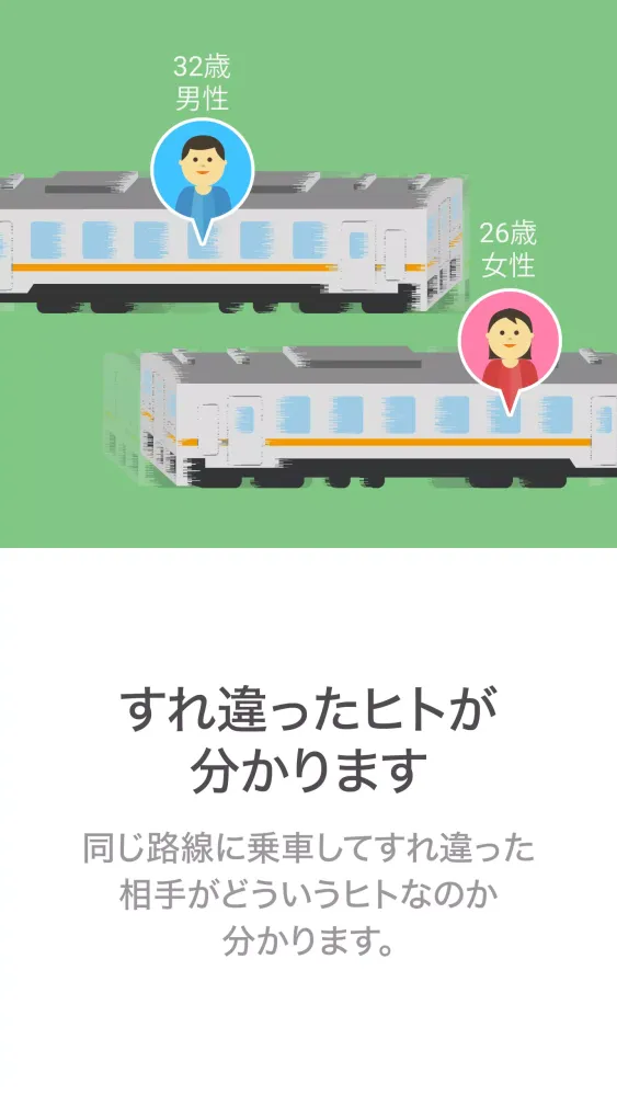 But that’s not all! "meguToro" adds an element of surprise and excitement to your daily commute. It collects data on people passing by in opposite directions on the train, providing insights like "a 20-year-old female" or "a 30-year-old male" whizzing past at 100 km/h. This unique feature allows you to gather interesting information about those around you, potentially revealing new connections and even spotting familiar faces in unexpected places.