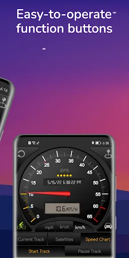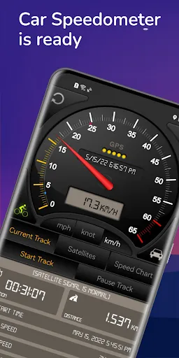 - Switch between car speedometer and bike cyclometer.