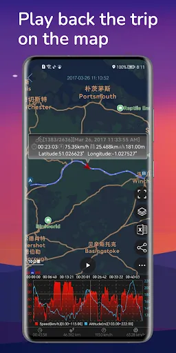 This app can track your speed,distance,time,location and also can get start time,time elapsed,avg speed,max speed,altitude...