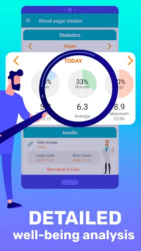 ★ Diary of diabetes tracker takes into account the specifics of each person and allows you to flexibly set the normal blood sugar tracker levels – sugar diary app will automatically analyze each record and meter the dynamics of changes in charts, so in fact, you will take full diabetic control.