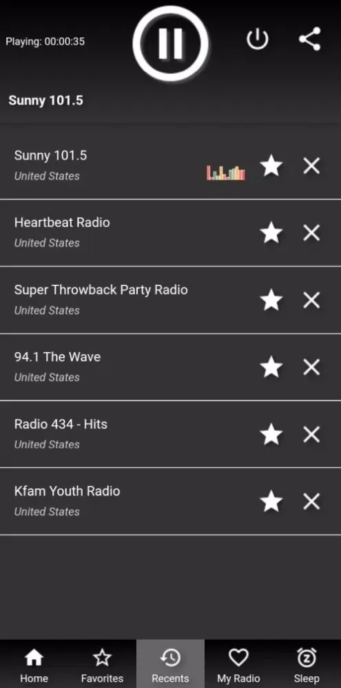 Add your favorite stations to a personalized favorites list for easy access. You can also view recently played stations in your history. Enjoy your music through your phone’s speakers or via Bluetooth, providing flexibility and convenience.