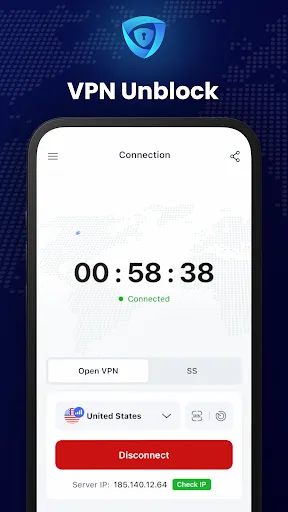 Fast and free VPN service VPN Unblock in one click unlock access to any site and application. Secure and anonymous connection, provides OpenVPN connection with OpenSSL key 2048 bit.