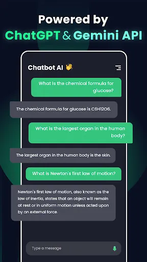 Introducing the newest and smartest way to chat - a mobile app powered by the advanced ChatGPT & Gemini model. This app lets you have engaging conversations with an AI chatbot that can provide you with insightful and accurate answers to all your questions. Whether you want to know more about a particular topic, need advice on a situation, or just want to have a casual conversation, this app has got you covered.
