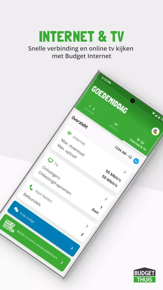 Welcome to Budget Thuis, your go-to application for managing all your energy and telecom needs with ease and efficiency. Whether you're looking to gain deeper insights into your energy consumption, manage your telecom subscriptions, or simply stay updated on critical moments, Budget Thuis has got you covered. Available anytime, anywhere, this app ensures that you have control over your services at your fingertips.