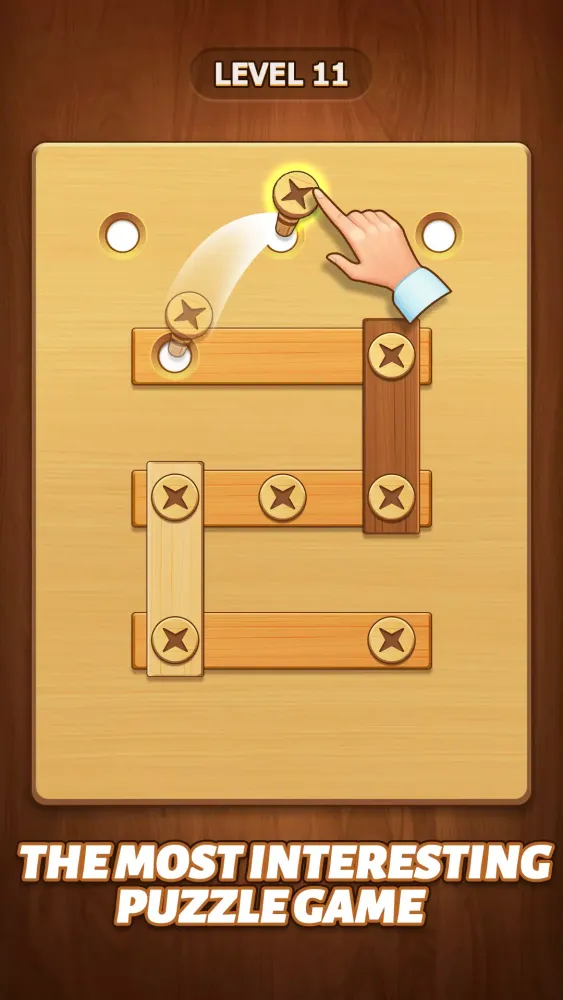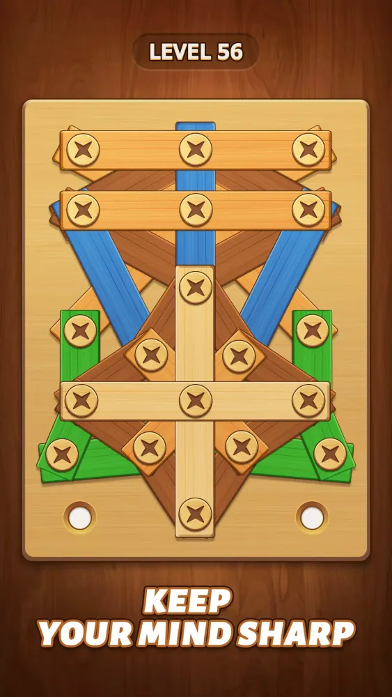 One of the standout aspects of Nuts Bolts Puzzle is its stunning visual design. The game boasts beautifully crafted graphics that breathe life into every puzzle. From vibrant colors to smooth animations, each element has been carefully designed to enhance immersion without overwhelming the senses. The minimalist aesthetic also serves another purpose—it minimizes eye strain, allowing you to focus fully on solving the puzzles at hand. For those who appreciate a touch of customization, the game offers multiple exquisite themes featuring over ten unique skin options. Customize your experience by choosing between different textures and styles for the wooden nuts and bolts, adding a personal flair to your gameplay.
