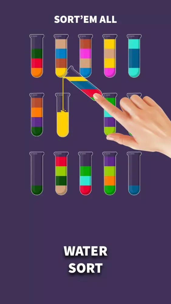 Enjoy the classic Water Sort puzzle game, similar to popular games like Sand Sort and Ball Sort! Your goal is to pour and match colors by sorting liquids into the correct tubes. This addictive color-sorting game will test your skills in bottle and tube sorting puzzles, providing endless fun.