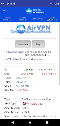 Thanks to AirVPN, Eddie protects your Android device traffic. Eddie can be used even with any other VPN service based on Wireguard or OpenVPN.