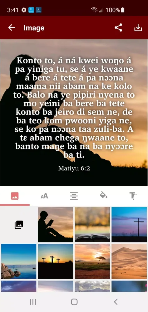 The app’s primary goal is to make the Scriptures accessible to everyone, regardless of their technological proficiency. With features like free downloads of the New Testament in Kasem audio, highlighting verses during playback, and bookmarking favorites, it ensures an immersive experience. Additionally, the ability to add personal notes and conduct word searches within the Bible makes it an indispensable tool for anyone looking to delve deeper into the scriptures. One of the standout features is the "Verse of the Day," which can be set as a daily reminder. Users can choose to receive notifications at a preferred time and even listen to the verse or create a custom wallpaper to share with others.