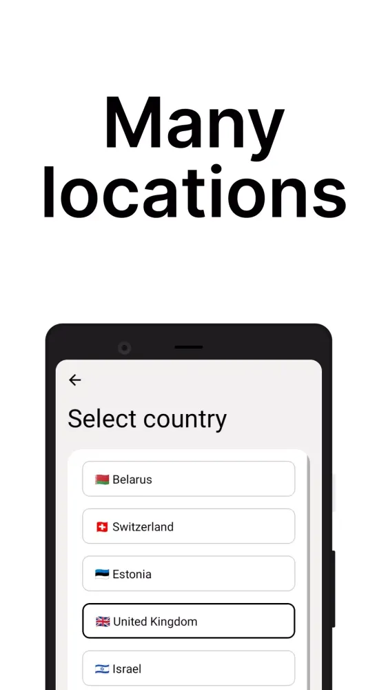 The server locations include Belarus, Estonia, Israel, Kazakhstan, Lithuania, Latvia, the Netherlands, Poland, Russia, Turkey, Ukraine, and the United States. Additionally, the United Kingdom is also included in the list, providing users with even more options to choose from based on their preferences and needs.