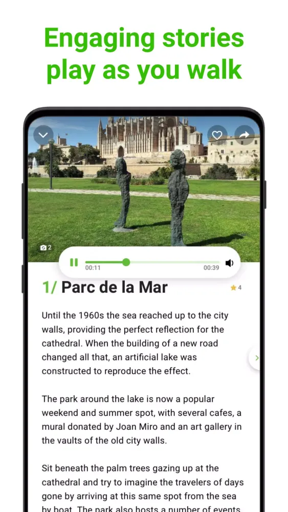 SmartGuide goes beyond typical tourist attractions by offering extra local secrets and insider tips. Our guides provide you with information about the best spots off the beaten path, helping you escape crowded tourist traps and truly immerse yourself in the local culture. Navigate Palma de Mallorca like a local!