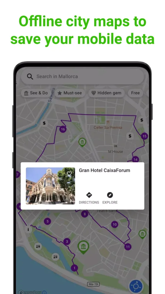 Download your Palma de Mallorca city guide and access offline maps and guides through our premium option. This means no more worries about roaming charges or finding WiFi while traveling. You’re ready to explore off the grid, with everything you need right in the palm of your hand!