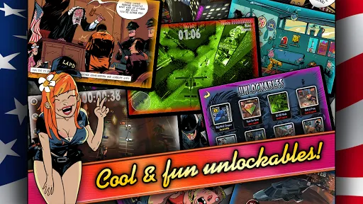Live the life of Rob, the ultimate badass police officer, who gets things done! Fly his police chopper and use its spotlight to catch criminals on the loose! Bring law and order back to three great American cities – Miami, New York and Los Angeles*! Unveil comic frames drawn by one of the world’s best comic artists and help Rob succeed in his quest to deliver justice!
