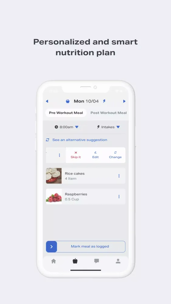 Monitor your nutrition goals and intake effortlessly with the intuitive home dashboard. Set and adjust your daily activity goals, track your workouts, and manage your nutrition goals all in one place. The app also includes a chat assistant for quick answers to your questions about training, nutrition, and more.