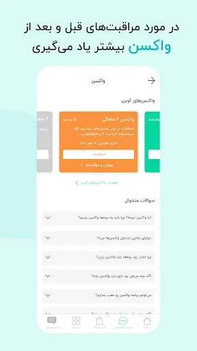 • ابزار واکسن: به شما زمان واکسنها رو یادآوری میکنه و همینطور راهکارهایی علمی برای مراقبت از فرزندتون بعد از تزریق واکسن رو هم براتون وضیح داده