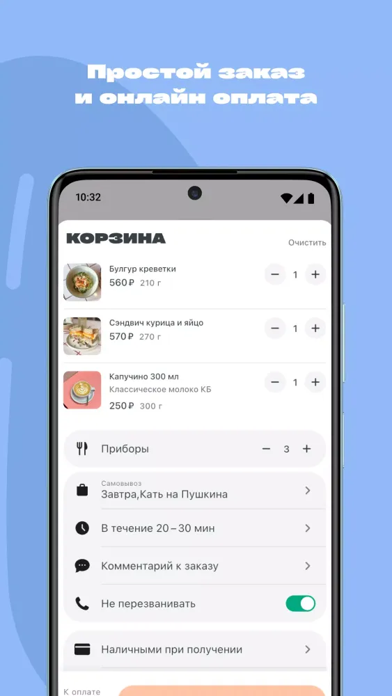 One of the standout features of the "Zavtra, Katty" app is its streamlined ordering process. Placing an order has never been easier—just select your items, confirm your order, and pay securely online within just a couple of clicks. Gone are the days of complicated checkouts or long phone calls. The app also offers a personal account where you can track your order history, view past purchases, and keep an eye on upcoming deliveries. This feature allows you to manage your orders effortlessly and revisit your favorite meals anytime.