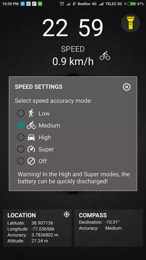 One of the standout features of our compass is the built-in speedometer, offering five different modes of accuracy. Selecting the appropriate mode will not only enhance your experience but also optimize your phone’s power consumption, ensuring longer operational times—especially useful when you're far from an electrical outlet.