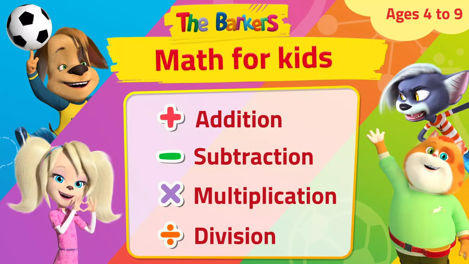 "Learn Math games for kids 1C" is an engaging educational app designed to help children in kindergarten, 1st grade, 2nd grade, 3rd grade, 4th grade, and beyond master mathematics through fun and interactive games. The app features the lovable cartoon characters, "The Barkers," who accompany your child on an exciting journey through the world of numbers.