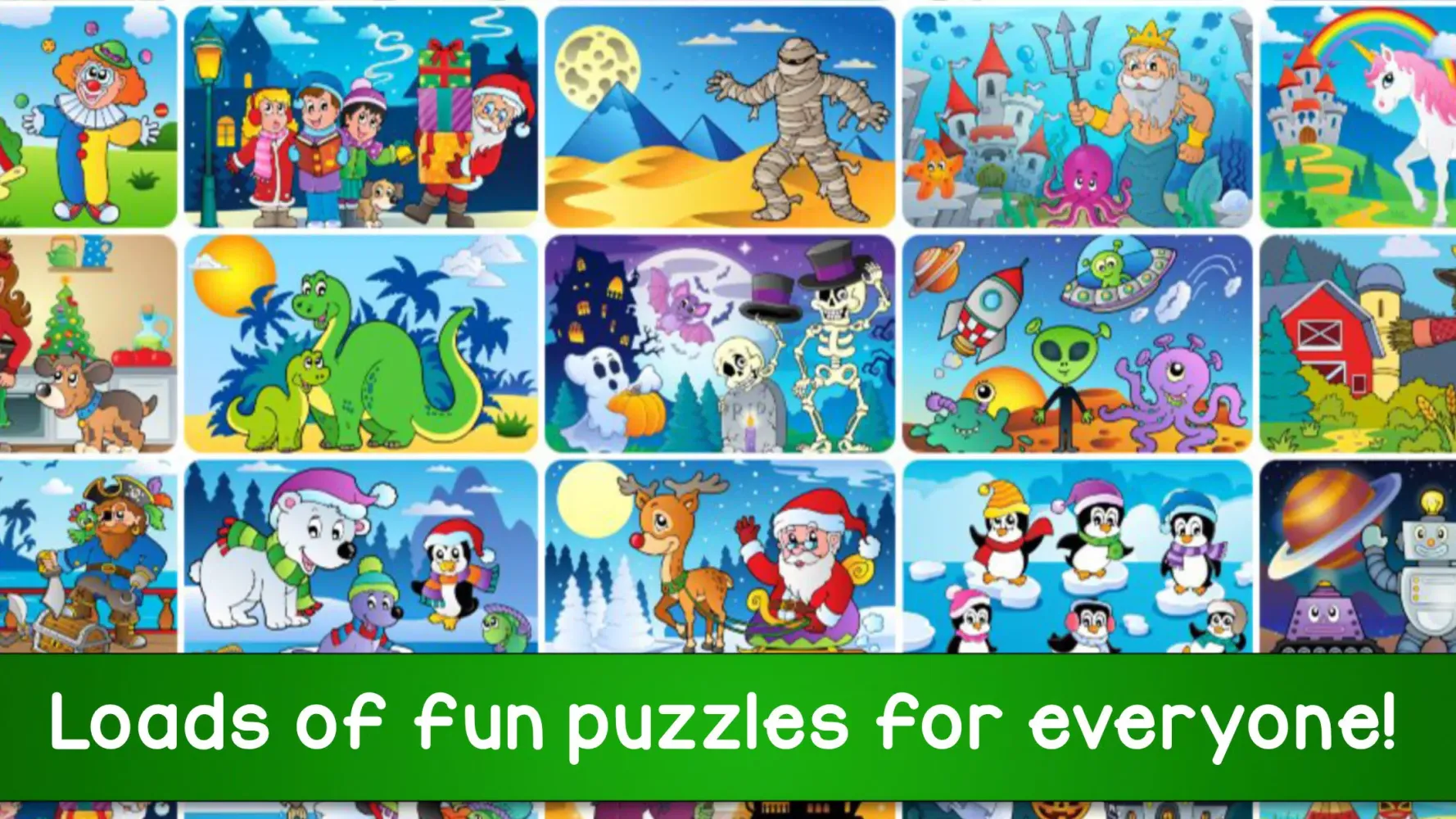 - Christmas: Celebrate the festive season with puzzles featuring Santa Claus and classic Christmas imagery.