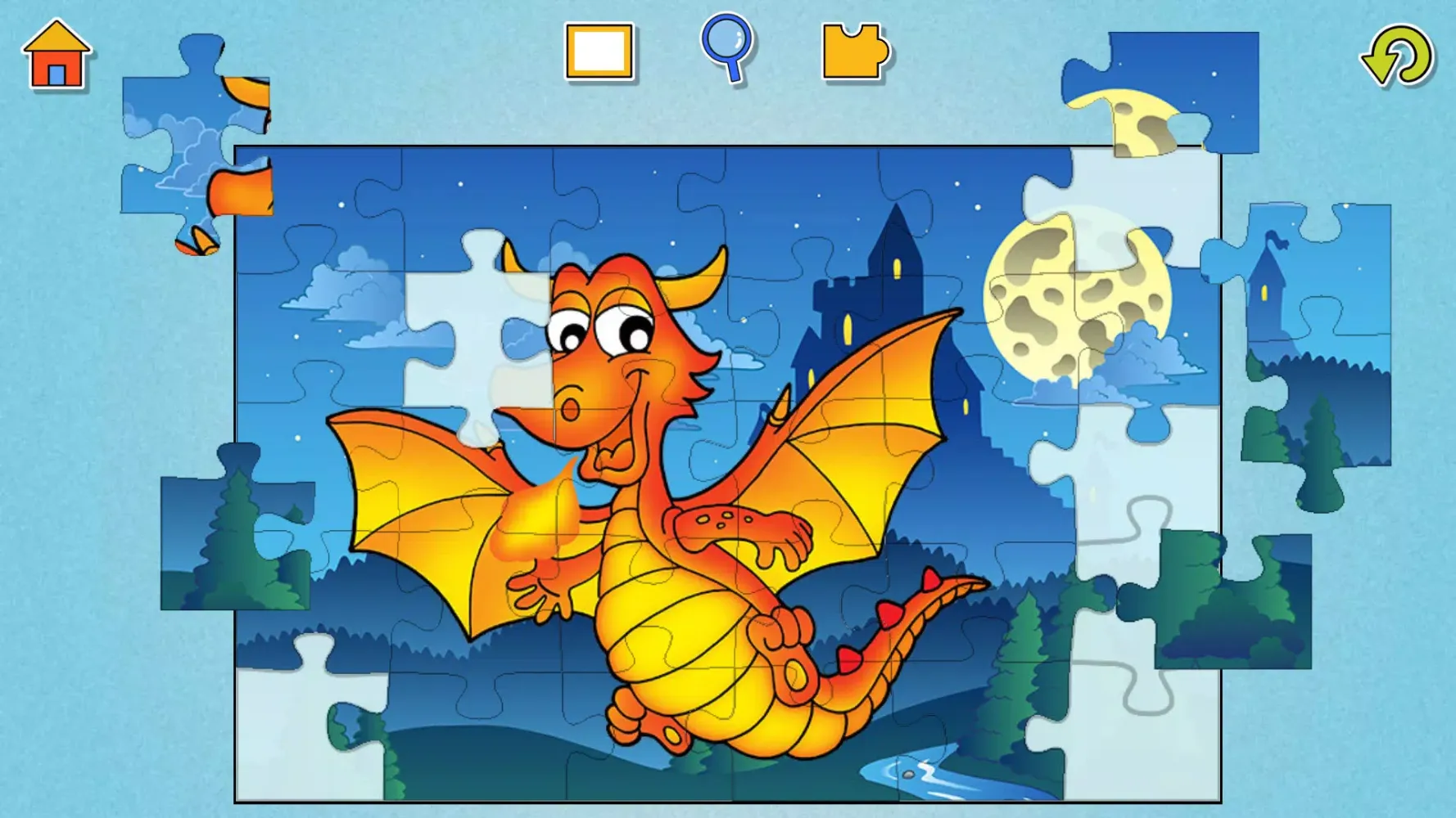 This free kids game mimics the experience of a real jigsaw puzzle, making it perfect for both kids and adults. When you pick up a puzzle piece, it stays on the board, allowing you to position it correctly before placing it. If you place it incorrectly, you can easily slide it into the right spot. Best of all, your progress is automatically saved, so you can take breaks whenever you need to.