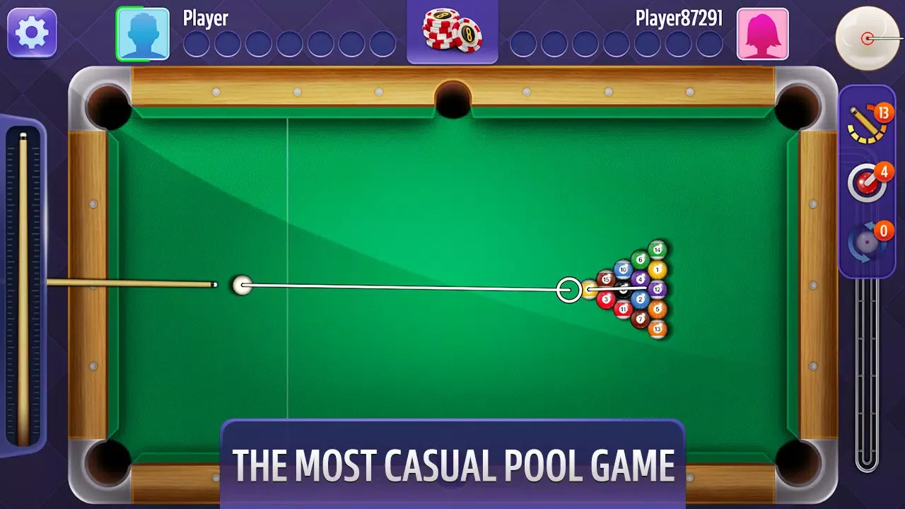 Realistic Gameplay: Experience the thrill of billiards through meticulous attention to detail. Each shot is impacted by true-to-life physics that mirror real-life interactions with the balls, enhancing your gaming experience.