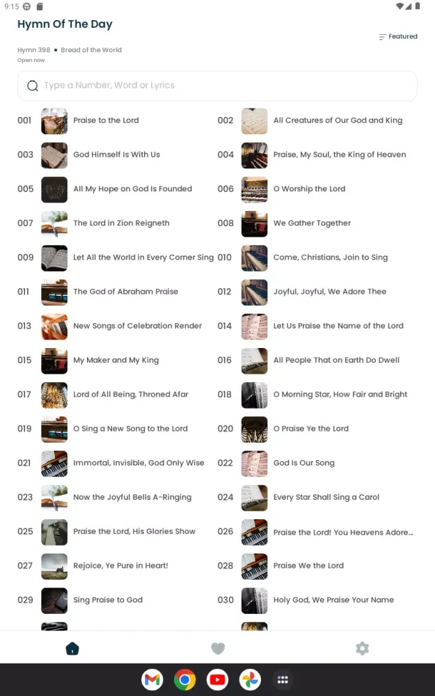 - Vast Hymn Library: Access a wide-ranging collection of hymns meticulously curated for worship, personal devotion, and study.
