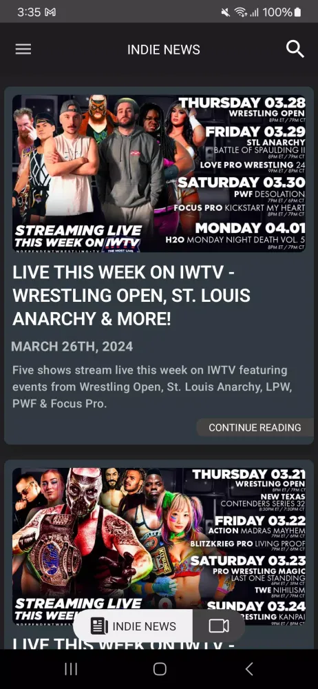 IWTV.live for Android brings you the ultimate experience in independent professional wrestling! Dive into an unparalleled collection of live and on-demand content that caters to wrestling enthusiasts worldwide.