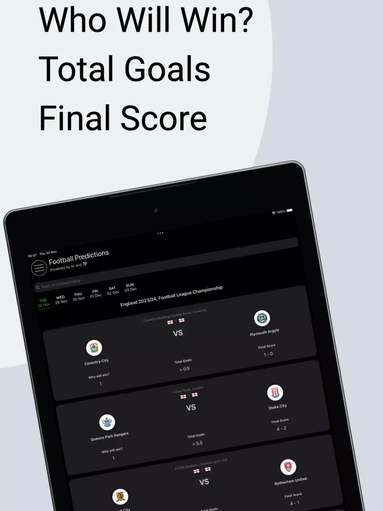 At its core, the app uses advanced algorithms to analyze vast amounts of soccer data, including match statistics, team performance, player injuries, disciplinary records, and other key factors. By processing millions of data points, the app generates predictions that reflect the most likely outcomes of upcoming matches. These predictions are presented in a user-friendly format through detailed prediction cards. Each card contains essential information about the teams involved, including their names, the league, the venue, the expected winner, the exact predicted scoreline, the number of goals, and even country flags and team logos for added context. This ensures that users receive comprehensive insights into each match before it unfolds.