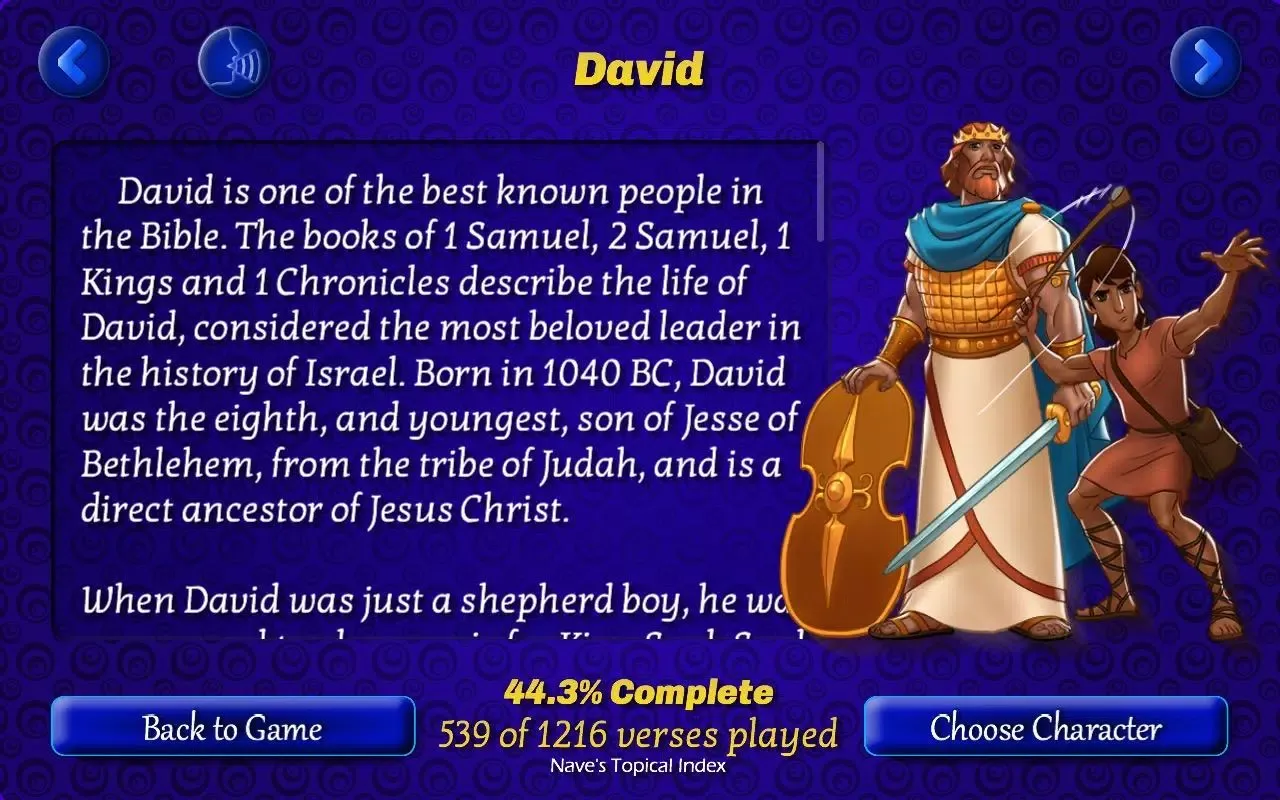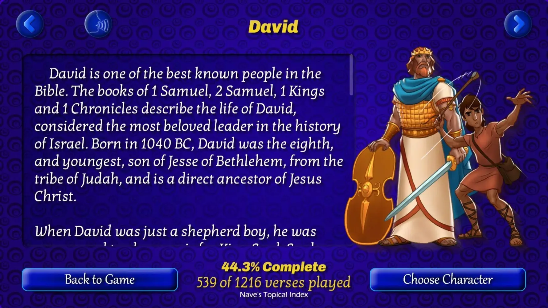 Track your character's progress and deepen your understanding of the scriptures with each verse. New game previews, a church feature, and a tutorial video make the game accessible and enjoyable for beginners. It’s easy to play yet challenging to master, and you can sync your progress across devices while connected to the internet.
