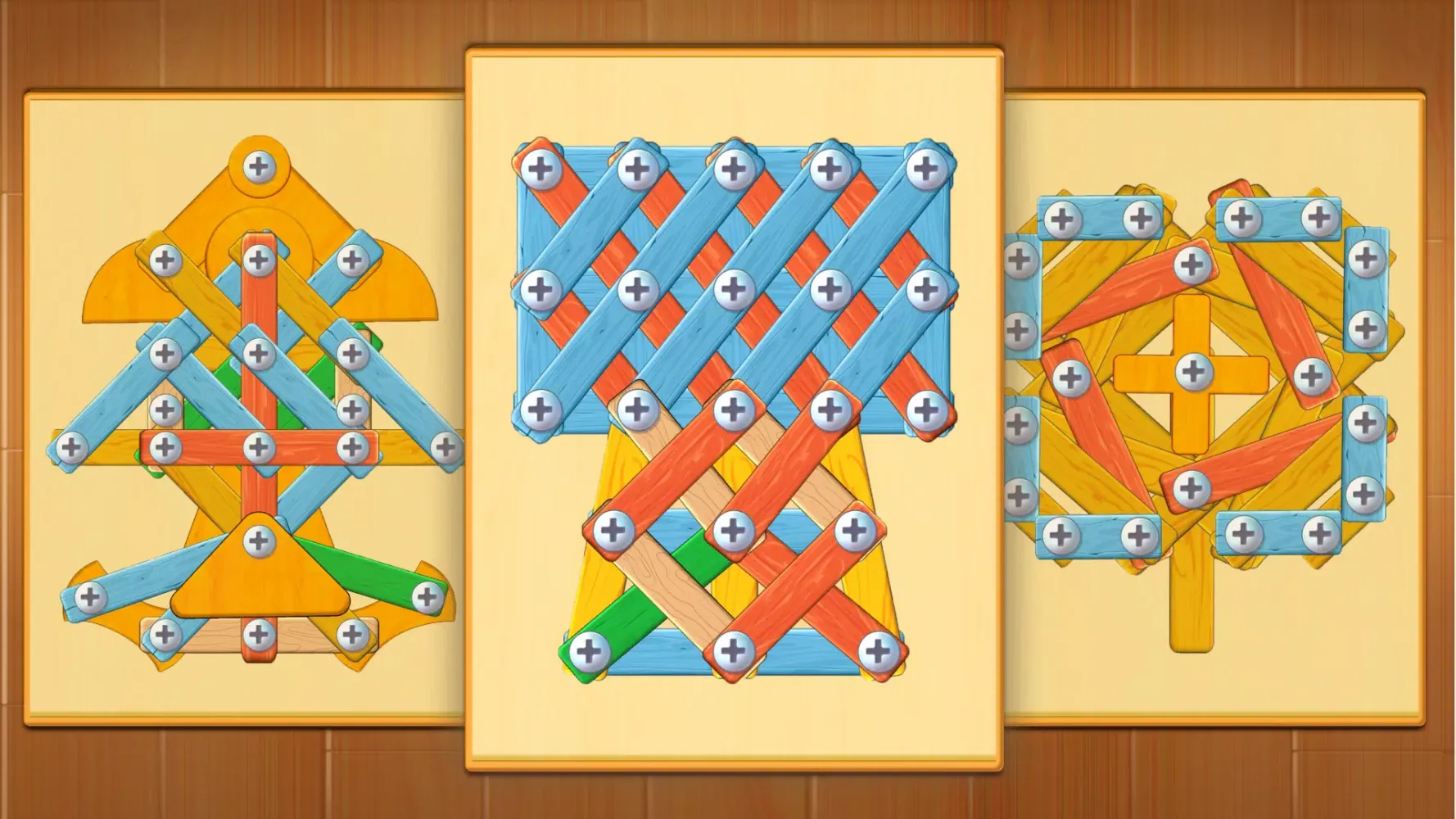 The gameplay itself is straightforward yet engaging. Players tap to twist nuts onto bolts, mimicking the motion of using a real screwdriver. By tapping on holes, you can drop bolts into place, tightening or loosening them to align wooden pieces perfectly. However, don’t underestimate the difficulty—every move counts, and one wrong decision could derail your progress. To help you navigate these tricky situations, the game provides helpful tools such as Undo, Unscrew, Hammer, and Replay. These features ensure that even if you get stuck, you won’t feel frustrated; instead, you’ll feel empowered to keep trying until success is achieved.