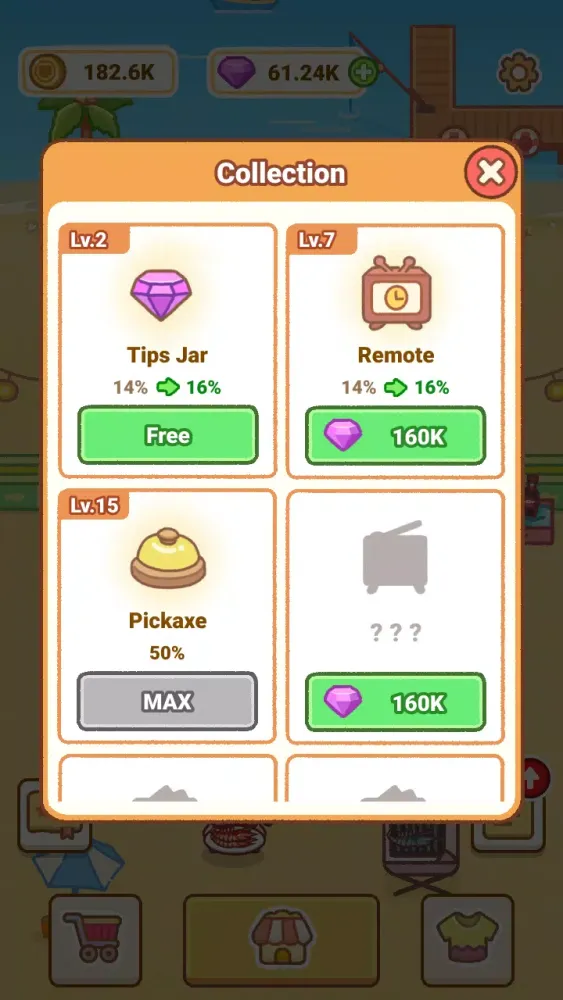 In this collection of cooking games for adults, you can upgrade valuable tools and gain tips from customers or other benefits to become a business tycoon. 💰🏆 Additionally, you can flip cards to open treasure boxes and discover legendary gifts. 🎁