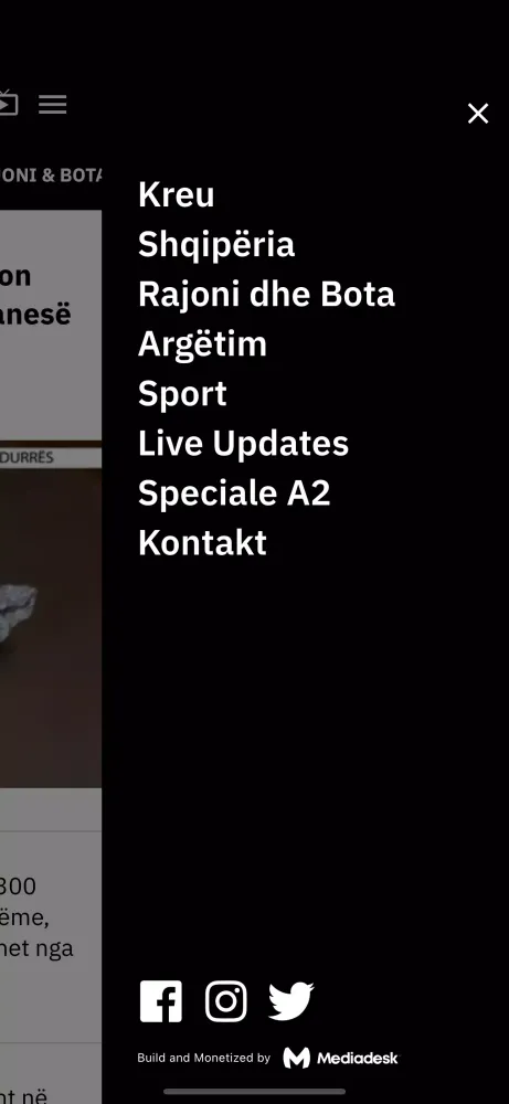 A2 CNN هي مصلك الرئيسي للأخبار الأحدث من ألبانيا وكوسوفو والبلقان والعالم. قم بتنزيل تطبيق A2 CNN للوصول إلى التقارير الحصرية والمقابلات والبرامج الخاصة والبث المباشر من الاستوديو، بالإضافة إلى الصور والفيديوهات التي تم اختيارها بواسطة مراسلينا وصحفيينا المخلصين.