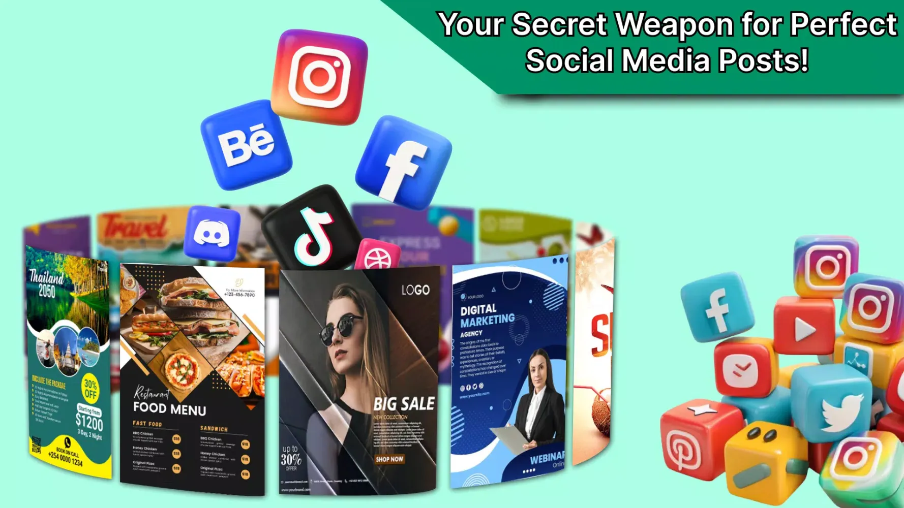 The Social Media Post Maker offers an extensive collection of templates for creating engaging ads for platforms like Facebook, Twitter, and Instagram. It simplifies the process of making quick and easy sale offers, party, and ad posts for social media advertising.