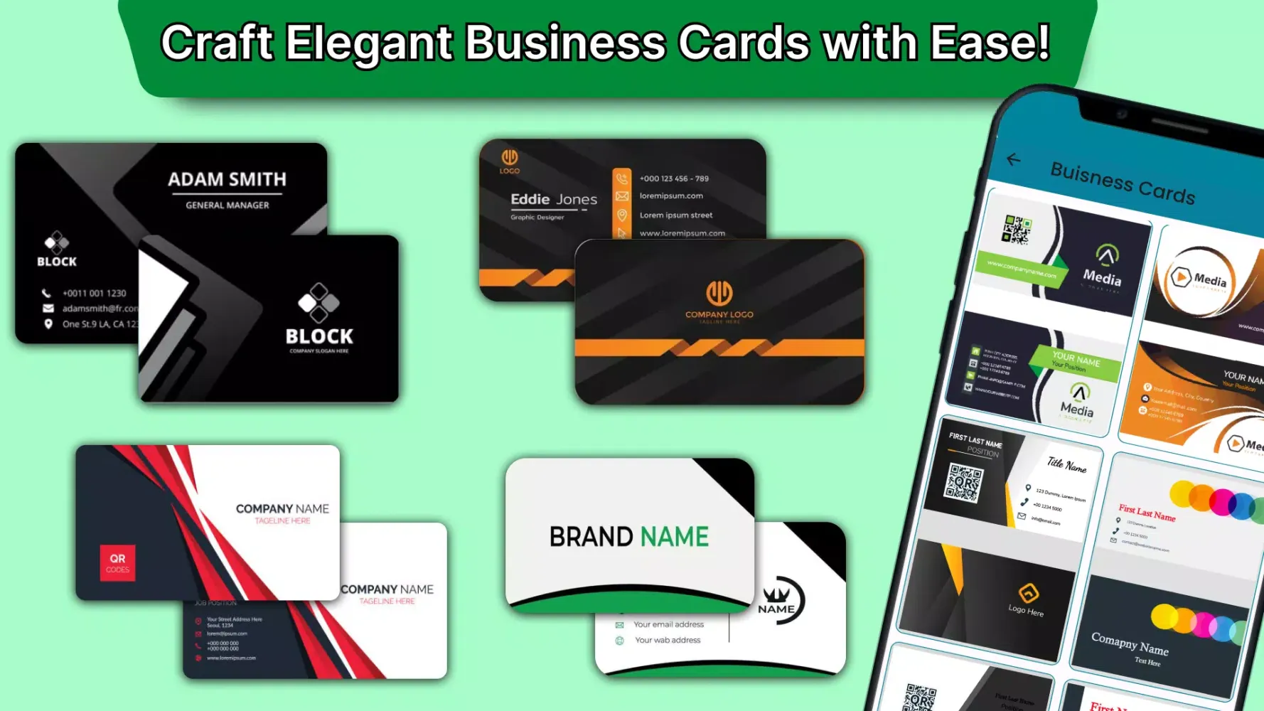 The Business Card Maker & Logo Maker offers exclusive templates for designing business cards and visiting cards. With pre-built templates, you can quickly create professional-looking business cards. The Logo Maker helps you create and add custom logos to your business cards, making them stand out.