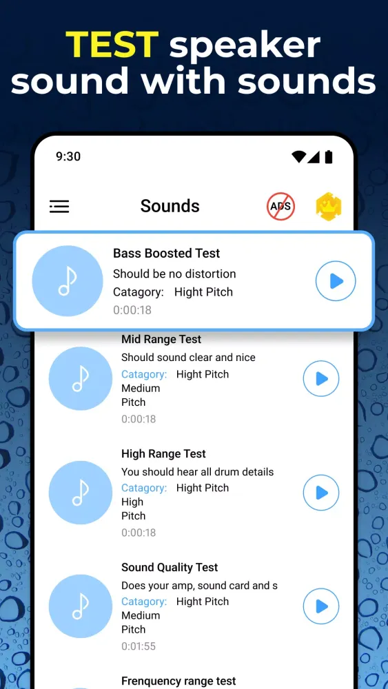 After the cleaning process, Speaker Cleaner provides various sounds to test your speaker. These tests help you verify if your speaker is clean and free from any residual water or debris.