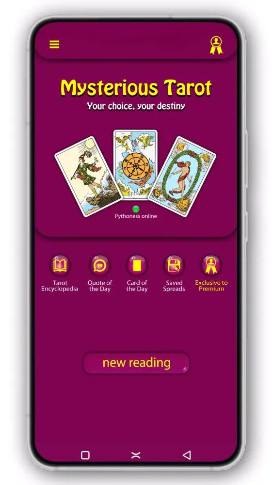 For those who prefer human interaction, the app offers the option to consult Pythoness, a virtual Tarot reader available as a paid service. Pythoness adds a personal touch to the readings, offering tailored insights based on individual queries. The app also includes practical tools such as a "Card of the Day" and "Quote of the Day," which can be set to notify users at their convenience, providing daily inspiration and guidance.