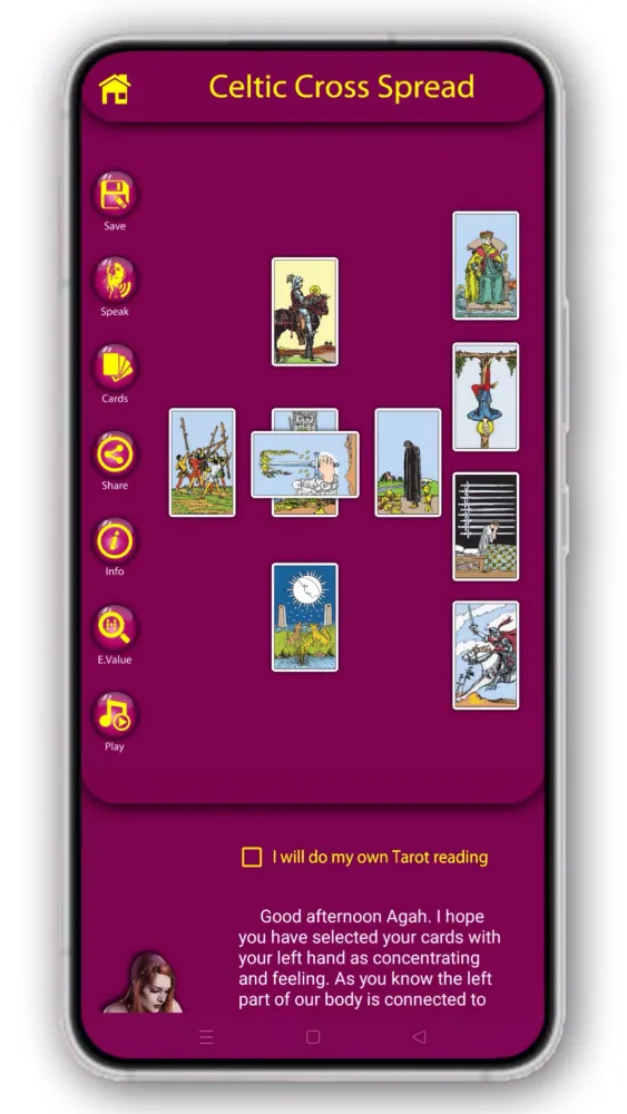 One of the standout features of Mysterious Tarot is its versatility. Users have the option to choose between two iconic Tarot decks: the classic Tarot deck created by A.E. Waite and P.C. Smith in 1909, known for its rich symbolism, or the CBD Tarot Marseille deck, which hails from a rich tradition of early European card-making. Additionally, the app supports the integration of physical Tarot decks, allowing users to seamlessly connect their tangible experiences with digital interpretations. For those interested in numerical analysis, the app even includes functionality to calculate the eigenvalue of a Tarot spread, adding another layer of depth to the readings.