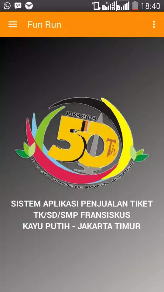 Welcome to the "Fransiskus Fun Run 5K" application! This application is specifically designed for alumni of Kindergarten, Elementary School, and Junior High School under the Fransiskus Educational Foundation. The purpose of this app is to facilitate the purchase of tickets for the upcoming 5K Fun Run event.