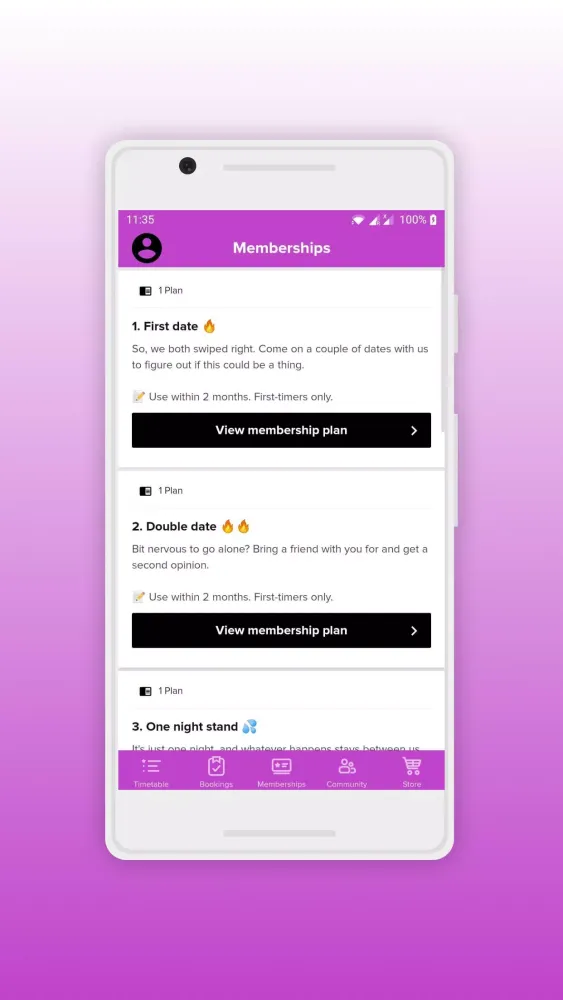 - Package Purchases: Buy class packages directly through the app.