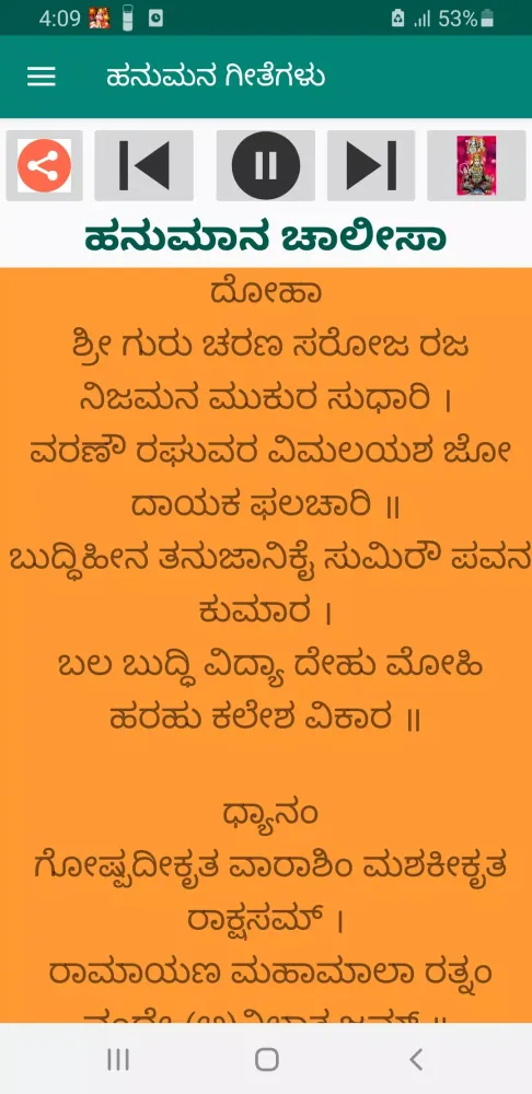 ಹನುಮನ ಗೀತೆಗಳು Audio & Lyrics is an amazing app for all devotees of Lord Hanuman. The audio quality is superb and the lyrics are very clear.