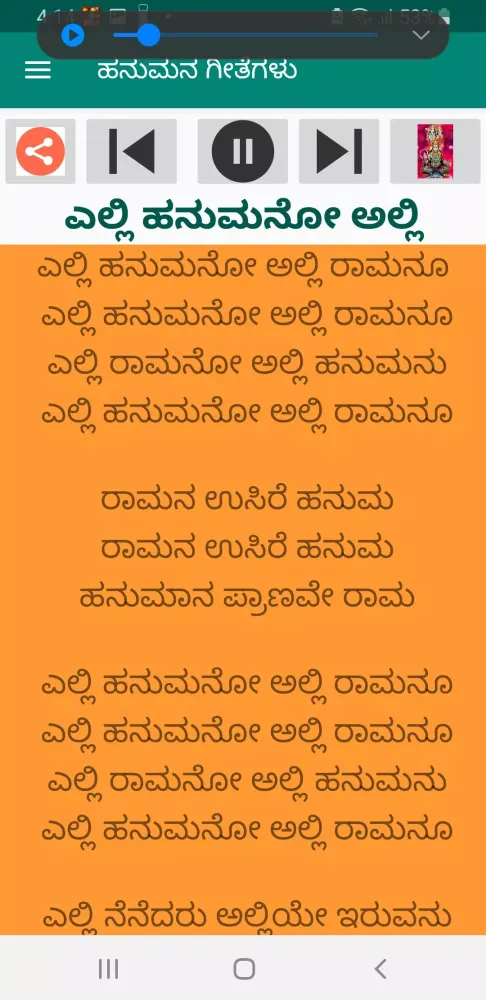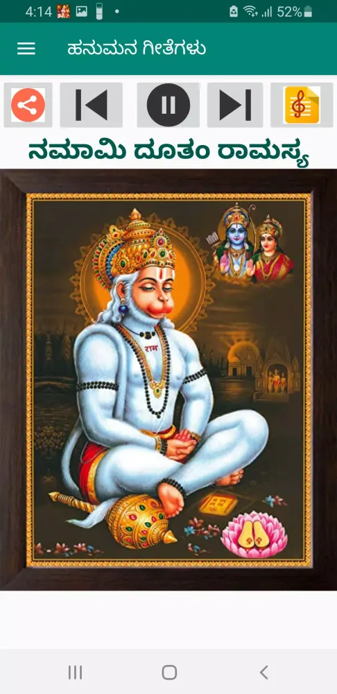 This app serves not only as a musical repository but also as a spiritual guide, helping devotees connect more deeply with their faith and traditions. Whether you are a seasoned devotee or new to the practice, "ಹನುಮನ ಗೀತೆಗಳು Audio & Lyrics" offers a rich and immersive experience.