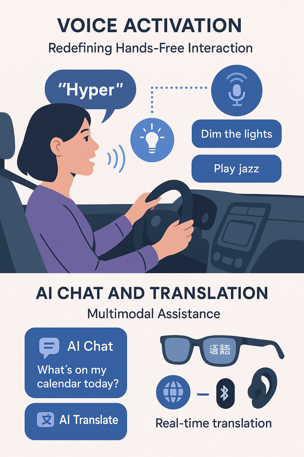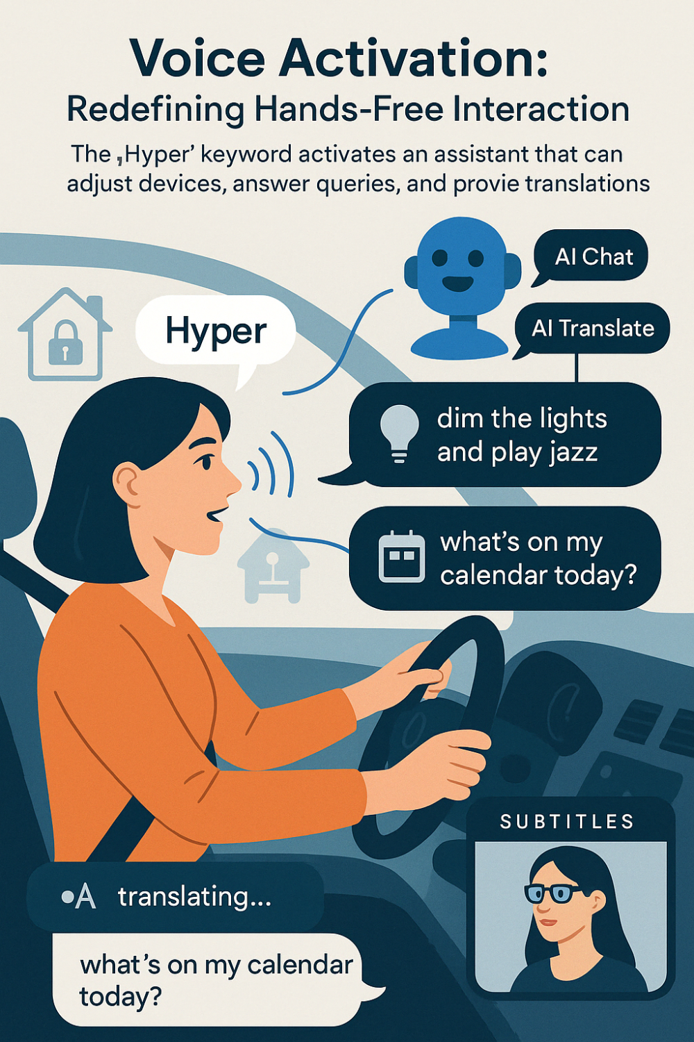 • Activation: When "Hyper" is spoken, the assistant activates for voice interaction.