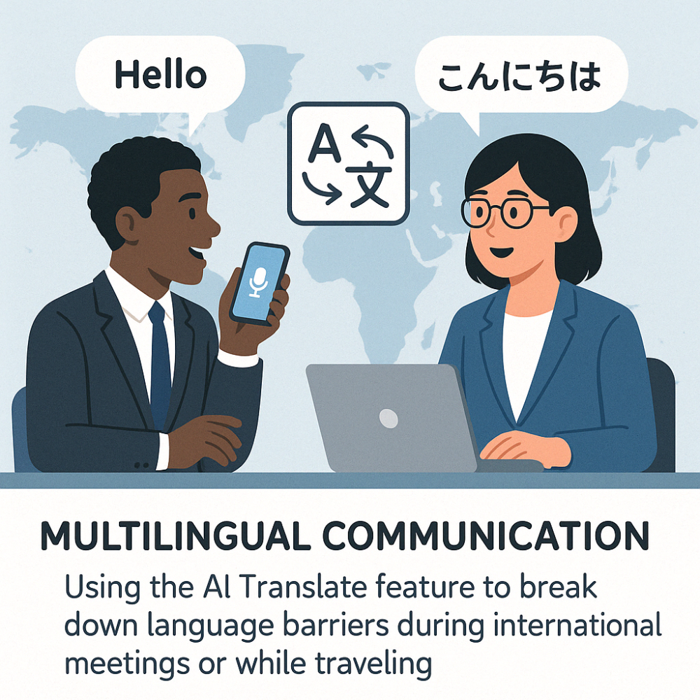 Scenario Using the AI Translate feature to break down language barriers during international meetings or while traveling. This feature provides instant translations in both voice and text formats.